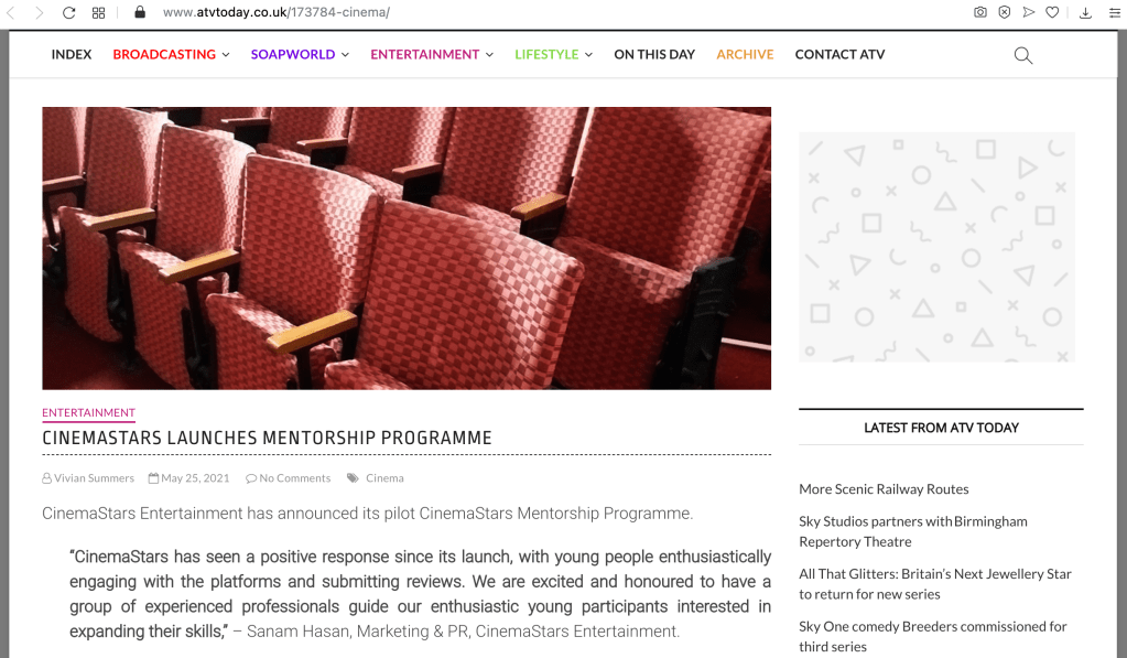 Delighted to have such great mentors on board including: Stefan Pape, HeyUGuys, Flora Neville, The Week Junior, Lexie Carducci, Riverside Radio & Abi from AKP Management!