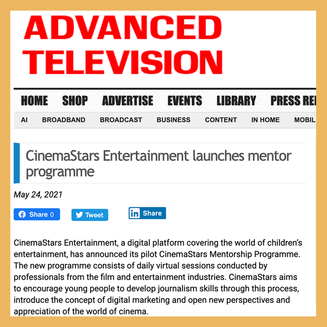 We are very excited and proud to announce the launch of the first CinemaStars Mentorship Programme! Delighted to have such great mentors on board including: Stefan Pape, HeyUGuys, Flora Neville, The Week Junior, Lexie Carducci, Riverside Radio & Abi from AKP Management! Read the full article on the ATV Today website. Click here!